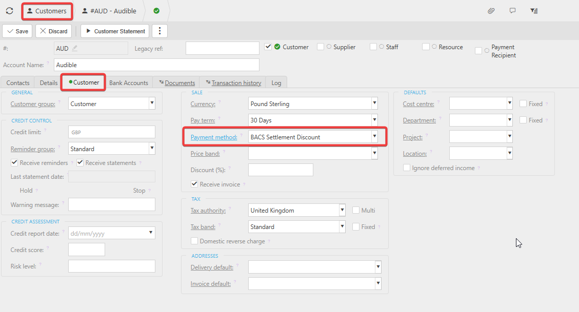 - Open the customer record.