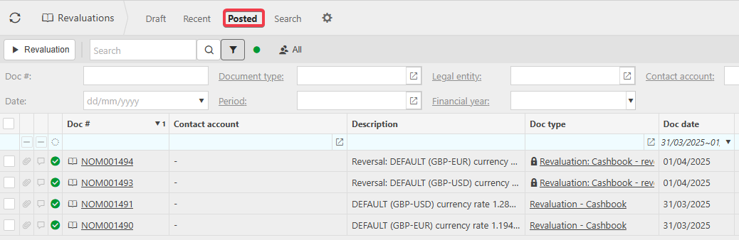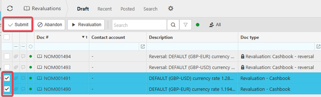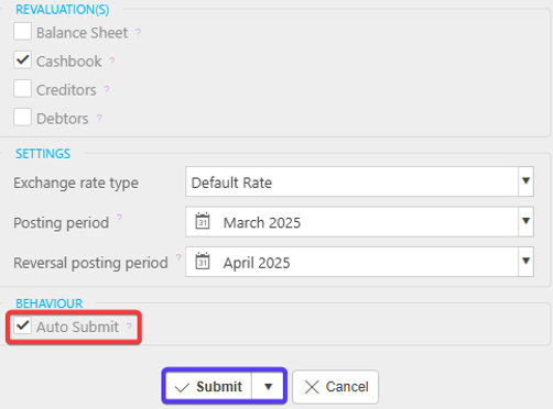 will post automatically when the main Revaluation: Cashbook journal is submitted.