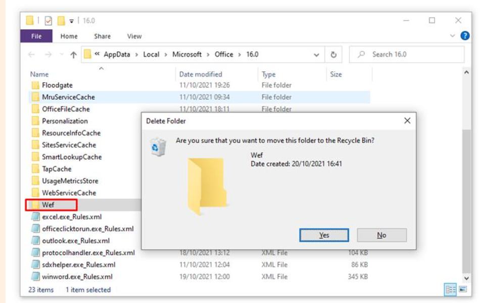 Once the above command has been executed, you will then need to delete the folder 'Wef'