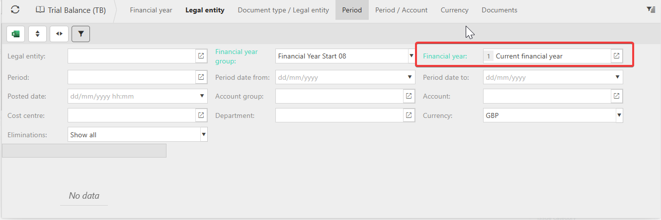 - Filtering on 'Current Financial Year' produces no data: