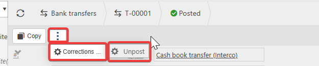 Unposting the Bank Transfer, selecting the new period and re-posting