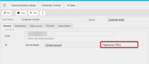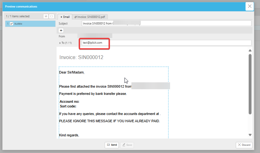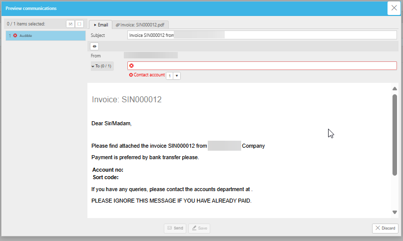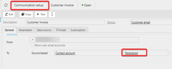 - Click into the specific communication affected—for example, Customer Invoice.