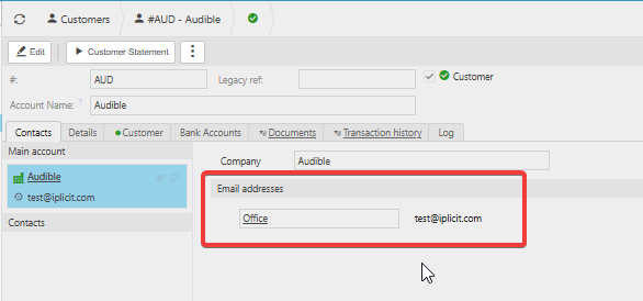 - Check that the Contact Type field is configured to pull the correct email field from the contact account. For instance, if the account uses “Registered Email” instead of “Office,” the email may not appear as expected.