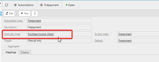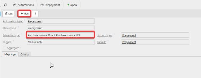 - Add the PO-based document type to the automation configuration.