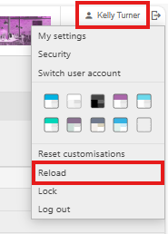 - Finally click the Reload button under your Login in the top right-hand side of iplicit screen.