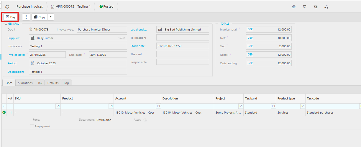 - You can initiate a payment from an Invoice transaction by clicking within the invoice and selecting the Pay button, manually creating a payment, or utilising bulk payments. The same process applies to receipts.