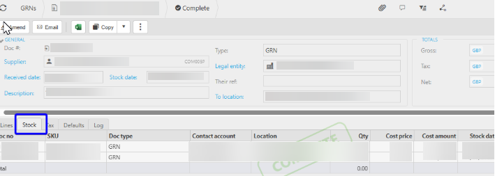 If the stock tab does not appear, it’s likely that stock has not been posted due to one of the following reasons: