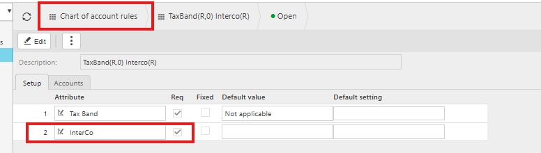 And a chart of account rule that has the attribute Interco listed and is ticked for required.
