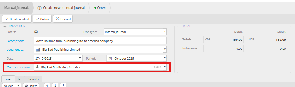 - And place in the legal entity field the company where the money is now. In my example Big Bad Publishing Limited.
