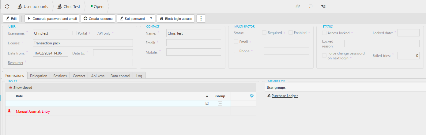 - Firstly, check the User accounts in iplicit to establish if they have the appropriate permissions If they work in purchase ledger administration, they likely will not need permissions that relate to manual journals.