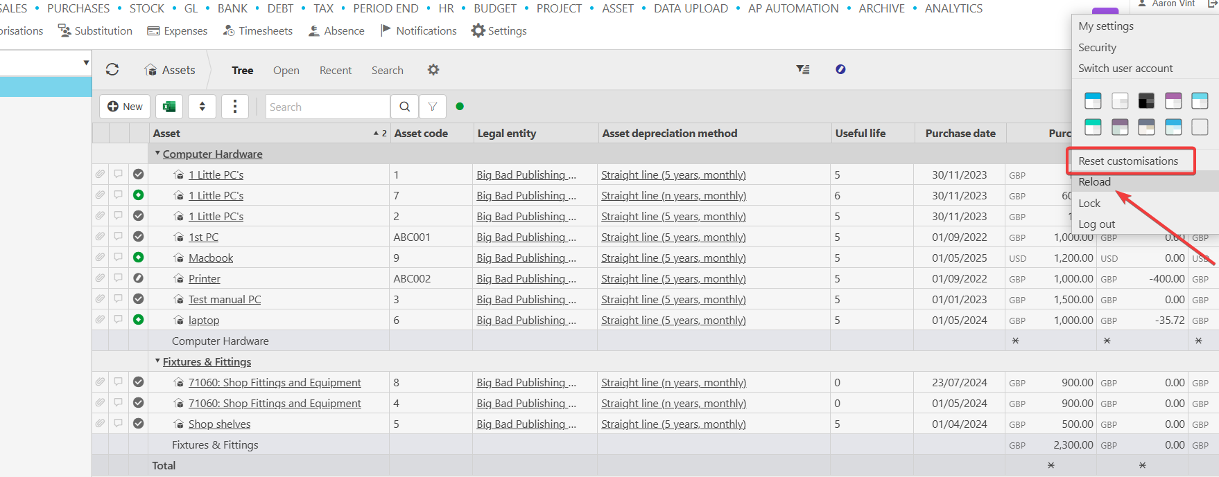 If that doesn't resolve the problem, the next step would be to reset customisations of the Asset View screen, like below: