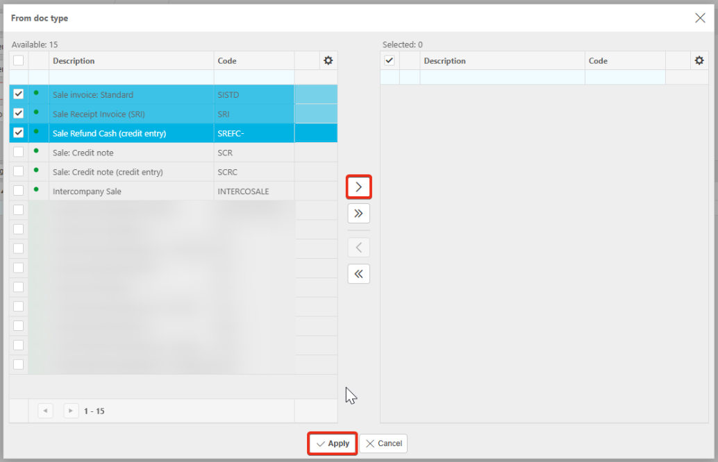 Select any of the documents you would like to use deferred income on.