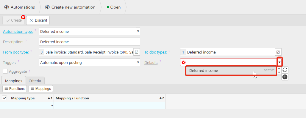 Select the Deferred income from the Default dropdown.