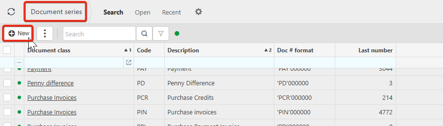 1. Navigate to Document Series, and select New.
