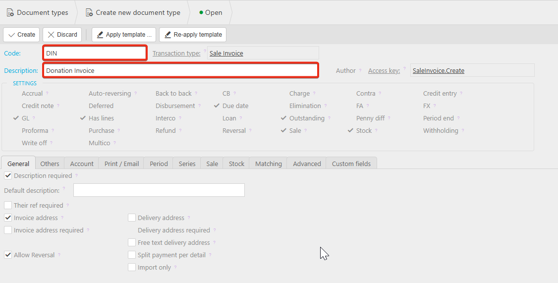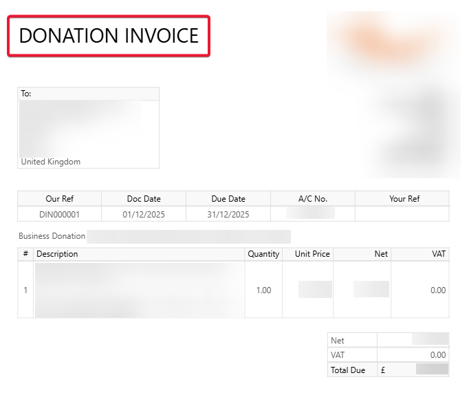 In this example, we will be creating a Donation invoice.