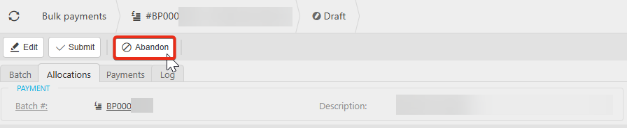 3. After unposting, the payment will return to a draft state, and you will have the option to Abandon it.