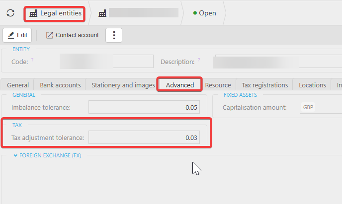 How do I amend the tax adjustment tolerance? Modified on: Tue, 13 Jan, 2026 at 1:21 PM You can amend the tax adjustment tolerance within your system by navigating to: Legal Entity Settings → Advanced Tab From there, you can increase the tolerance to accommodate larger VAT rounding differences.