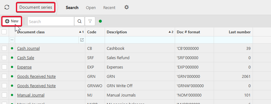 1. Navigate to Document Series, and select New.