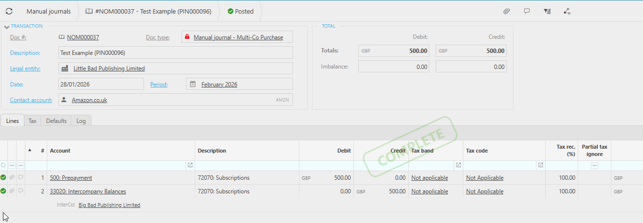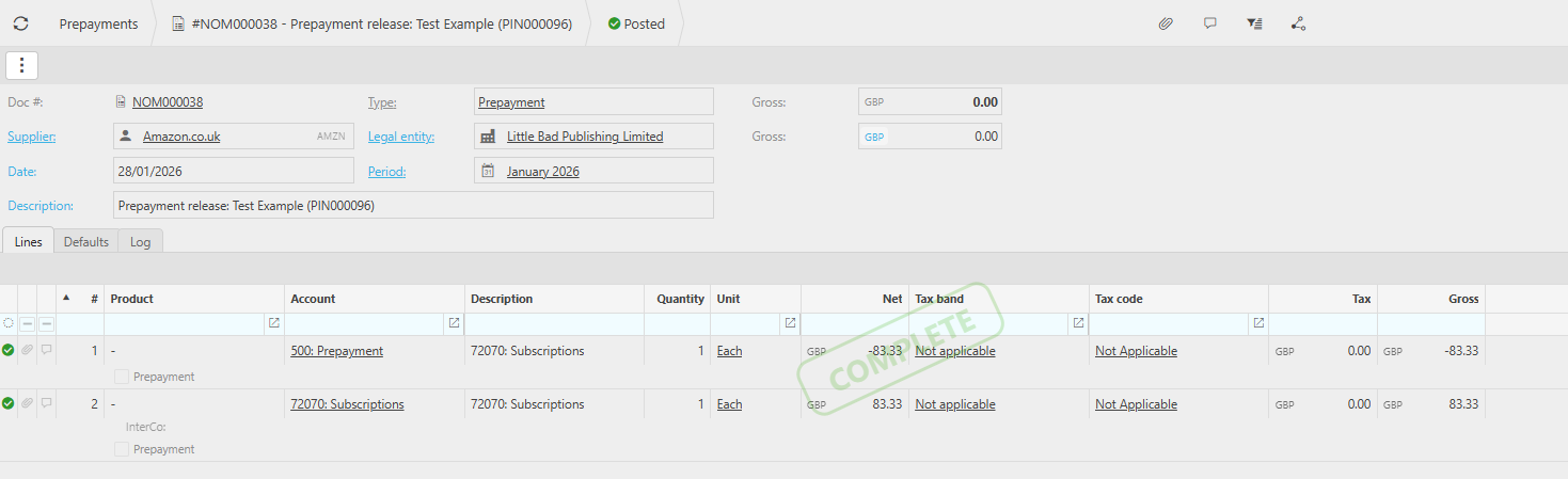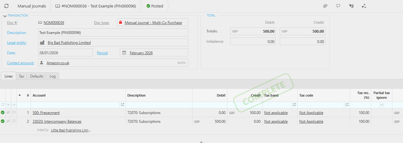 This ensures that prepayments are recognised in the correct legal entity and that the Intercompany accounts remain balanced.