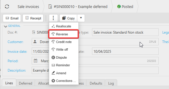 Once deferred income has been posted, it cannot be unposted or amended directly.