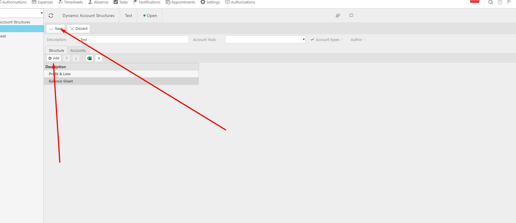 Dynamic Account Structures (DAS) allow you to create customised layouts for how account balances are displayed in enquiries such as the Balance Sheet or Profit & Loss. Each structure is made up of groups and sub‑groups that you assign accounts to.