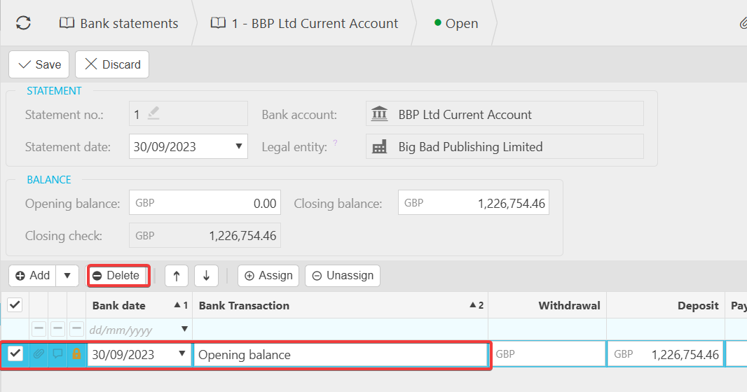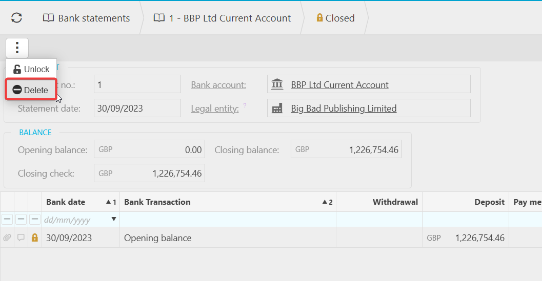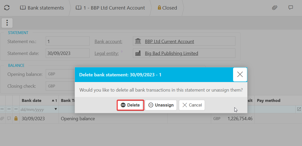- Deleting the transaction from the statement will automatically remove it from your bank reconciliation.