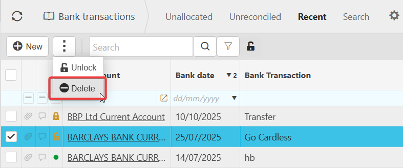 In this case, you can delete the transaction directly from the Bank Transactions screen.