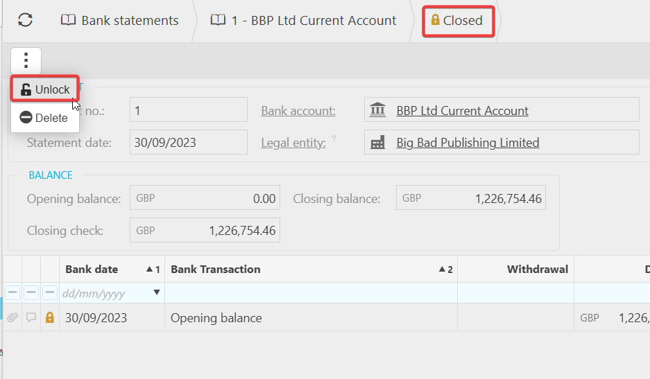 - Navigate to the statement shown in the Bank Statement column.