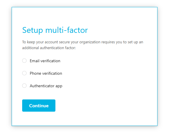 If SMS verification has been enabled through the environment defaults, there will be three multi-factor options upon the next login.