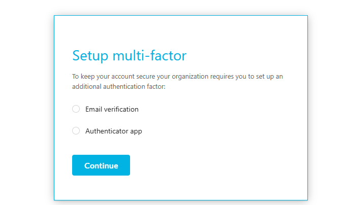 After setting up or enabling MFA on a user account for the first time, the next login attempt will prompt the user to establish an MFA link either through email, or Microsoft authenticator.