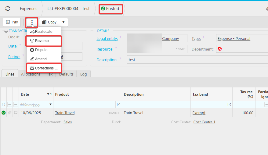 If the expense has been included in a VAT return or matched on a bank reconciliation, you cannot unpost it. Instead: