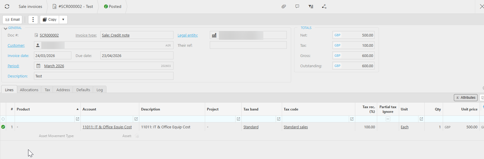 - Complete and post the credit note.