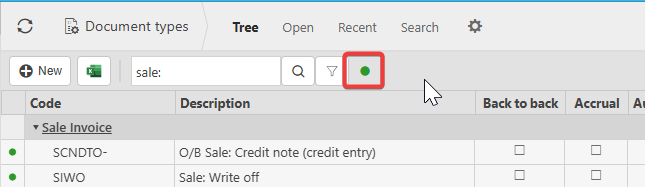 - If the document type is locked, you will see a green dot indicator. Click the green dot to expose the locked document.