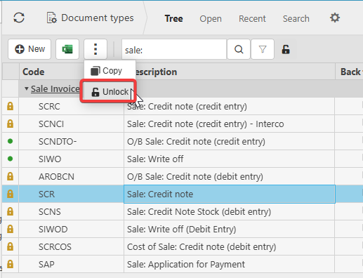 Unlocking document types if the credit note or sales refund is not available